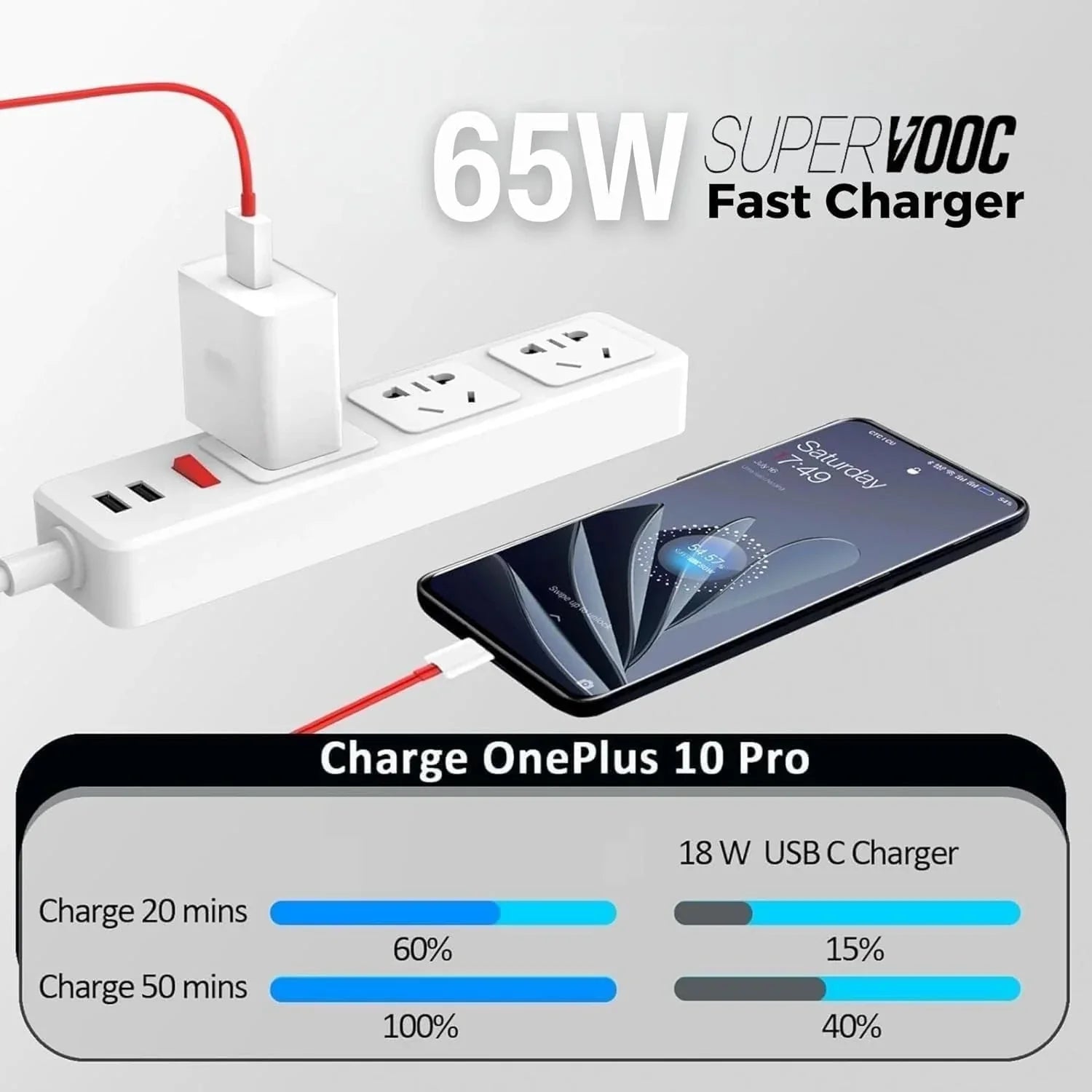 OnePlus 65W SuperVOOC Fast Charger with 1M Type-C Cable
